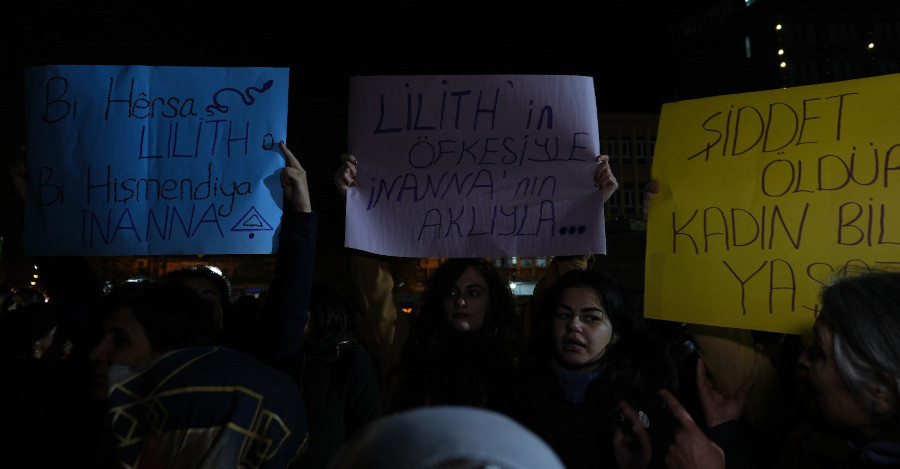 Dağkapı Meydanı’nda düdükler ve “Jin, Jiyan, Azadi” (Kadın, Yaşam, Özgürlük) sloganları ile bir araya gelen kadınlar polis ablukasına alındı. Polisin sık sık yaptığı “Bu eylem hukuksuzdur” ve “Terör örgütü sempatizanlarına ait sloganlar yasaktır” anonslarına abluka içinde bekleyişlerini sürdüren kadınlar sloganlar, zılgıtlar ve düdüklerle karşılık verdi.