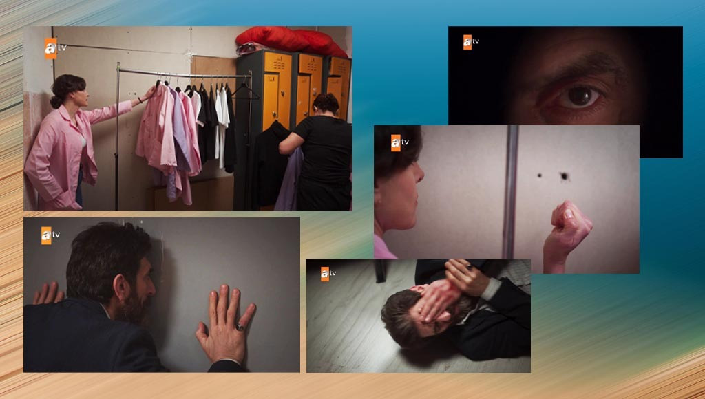7. bölümde de Hande, işyerinde çalışan kadınları odasındaki delikten ‘dikizleyen’ patronun gözüne delikten şiş sokuyor. Cezalandırma ile kadın tacizine karşı olma yan yana getiriliyor; hukuk ve kanunla hak arama çözümünü ıskalıyor. RTÜK’ün hattına şikâyet ettim.”
